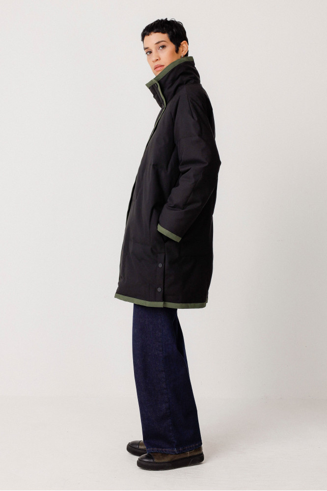Short coat with an extra-large collar, a zip closure, and an oversized front pocket. A collaboration with Martina Spetlova.