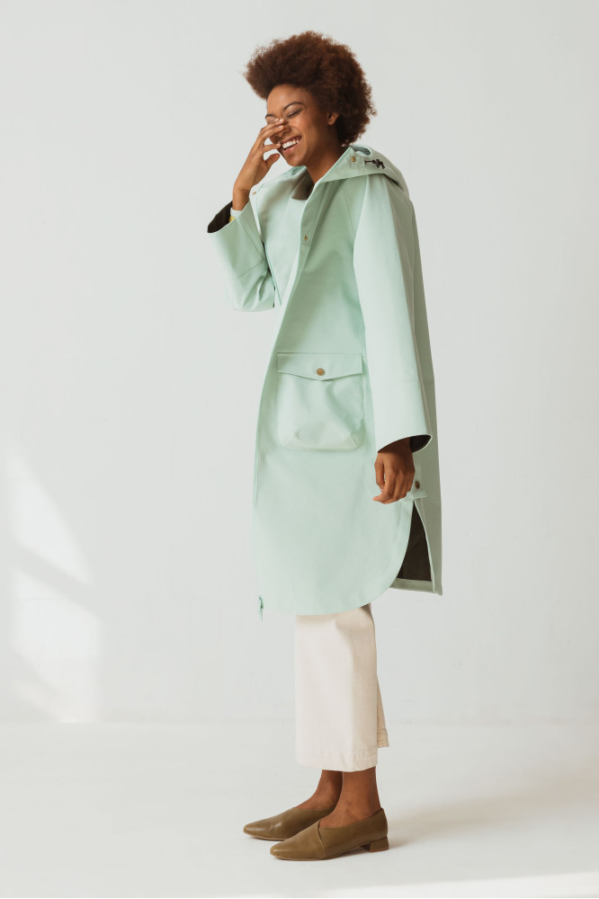 Funcional impermeable hecho con poliéster reciclado impermeable de corte amplio y protector. Tiene una capucha ajustable, bolsillos de solapa grandes, un cierre delantero de cremallera y unas aberturas con botones a presión en los laterales para mayor libertad de movimientos al ir en bici. Impermeabilidad 5000 mm, transpirabilidad 3000 g / m2 / 24 h. Tratamiento hidrófugo sin PFC. Verde oliva oscuro.