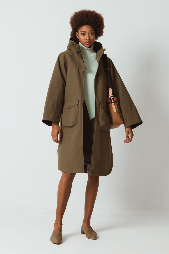 Funcional impermeable hecho con poliéster reciclado impermeable de corte amplio y protector. Tiene una capucha ajustable, bolsillos de solapa grandes, un cierre delantero de cremallera y unas aberturas con botones a presión en los laterales para mayor libertad de movimientos al ir en bici. Impermeabilidad 5000 mm, transpirabilidad 3000 g / m2 / 24 h. Tratamiento hidrófugo sin PFC. Verde oliva oscuro. En lugar de tirarlas, las botellas de plástico se pueden reutilizar para fabricar prendas nuevas. Estos modelos, fluidos y resistentes, permiten minimizar los recursos utilizados en su producción.