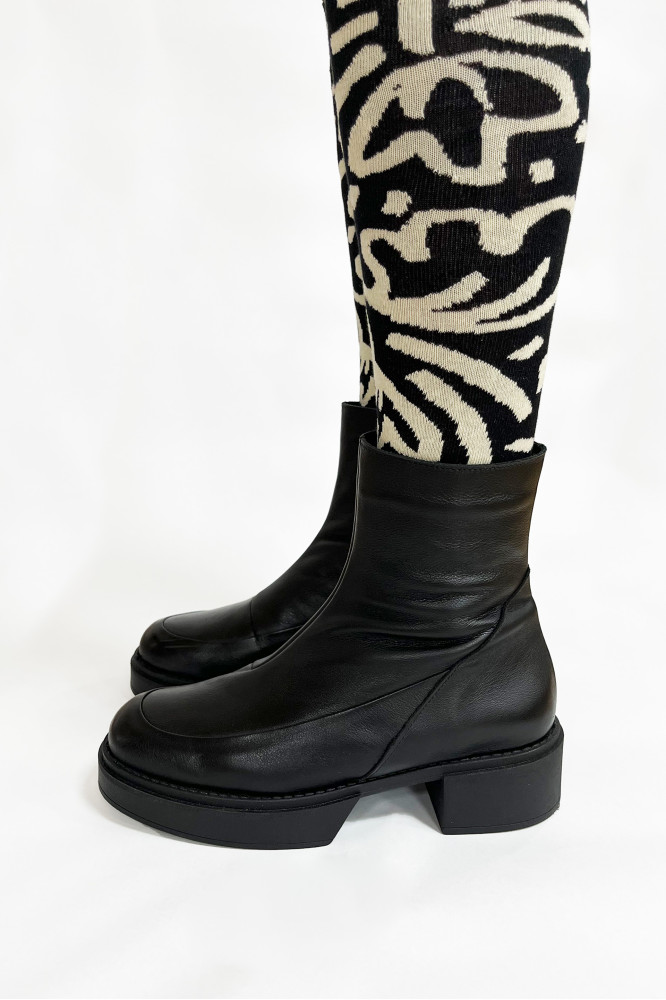 Botín de piel en colaboración con RAY MUSGO. Altura de caña 15 cm y cierre de cremallera en la parte interna.