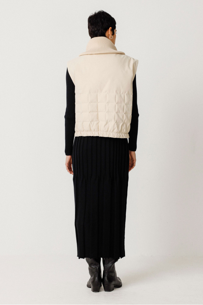 Chaleco acolchado con cuello chimenea de canalé y cierre de cremallera. Colaboración con Martina Spetlova. Una prenda de abrigo funcional y de moda.