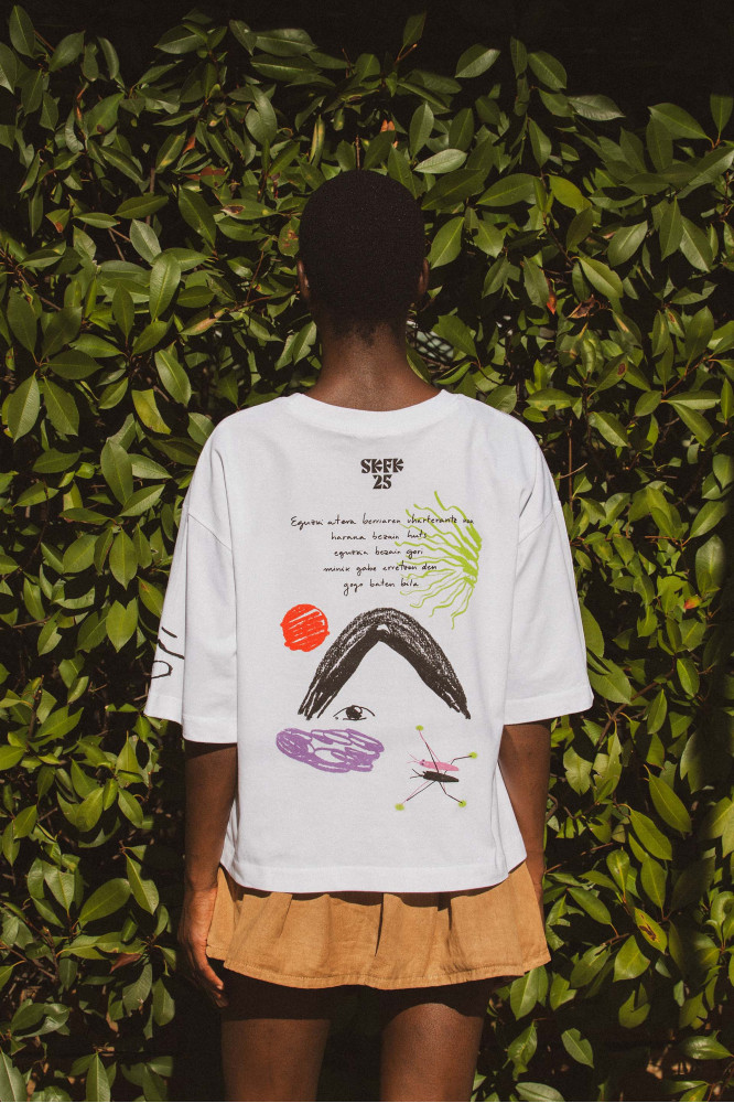 Edición limitada de la camiseta del 25 aniversario en colaboración con la artista Ariadna Chez. Cada una de estas camisetas está serigrafiada en Bilbao.