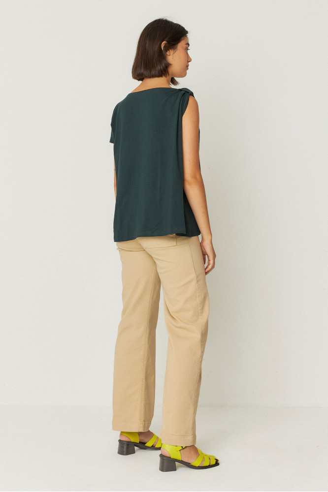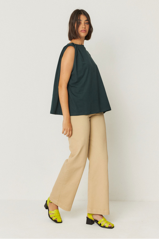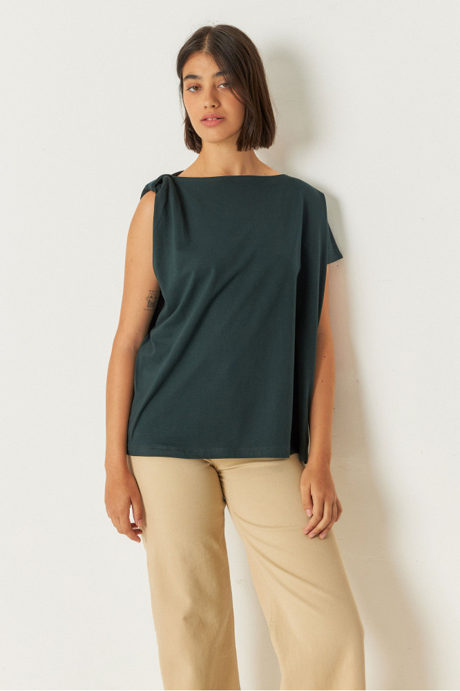 Camisa con forma drapeada y diseño asimétrico. Diseño zero waste, talla única.