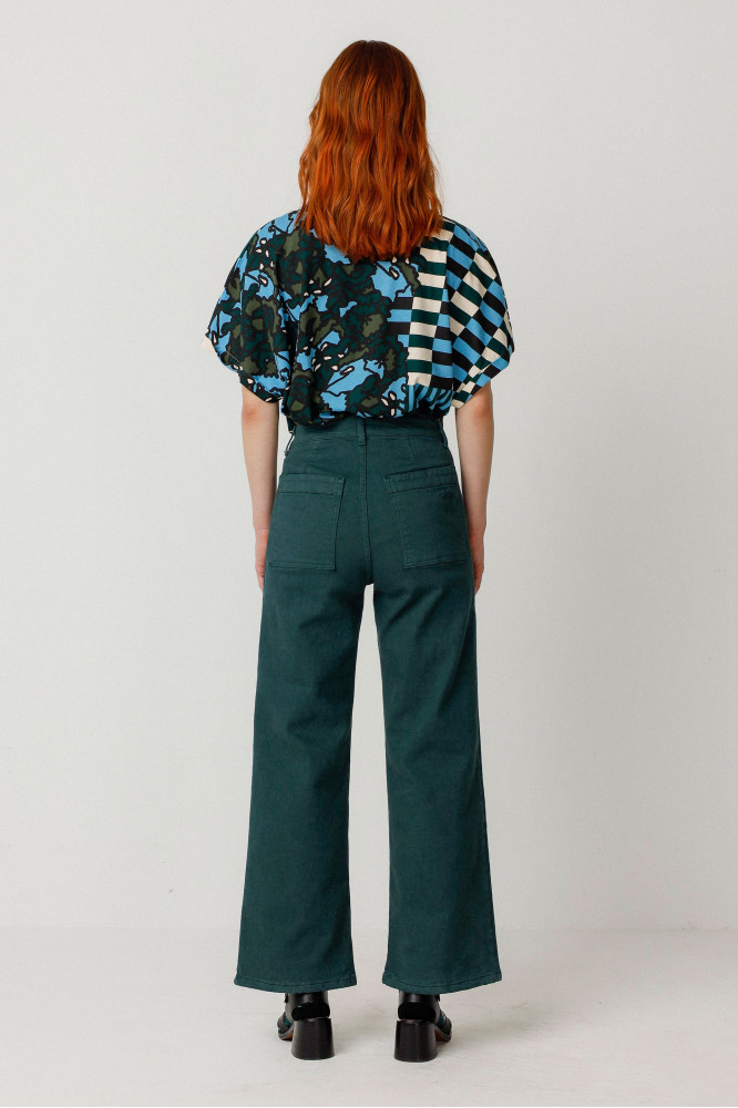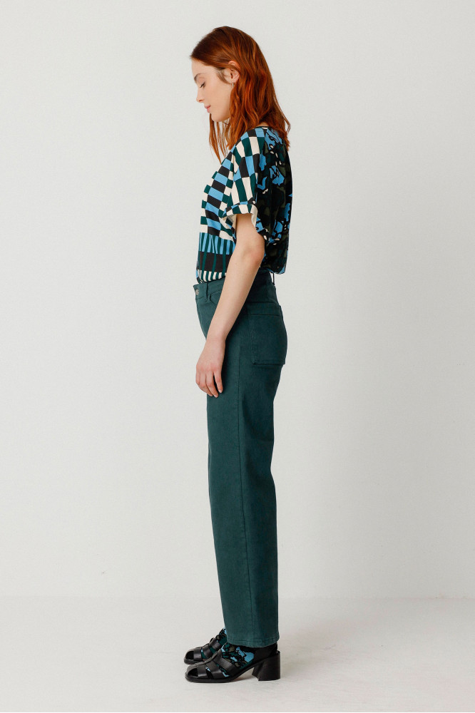Pantalón recto de pata ancha con bolsillos delanteros y traseros y cierre delantero de cremallera. Fabricado en España. Estilo atemporal con prácticos detalles.