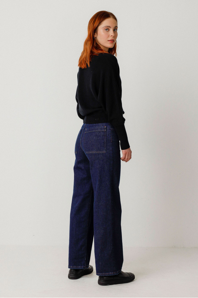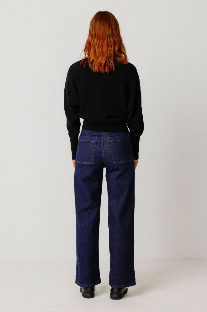 Pantalón recto de pata ancha con bolsillos delanteros y traseros y cierre delantero de cremallera. Fabricado en España. Estilo atemporal con prácticos detalles.