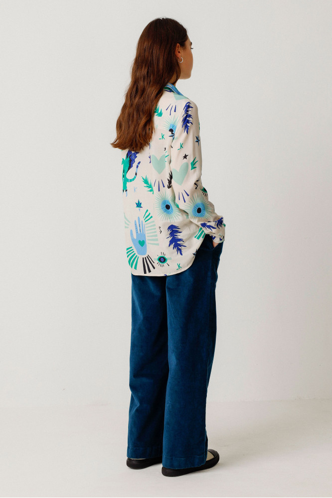Camisa estampada de corte recto con cuello camisero, mangas largas y puños con botones, de look único con cierre delantero fácil de abotonar.