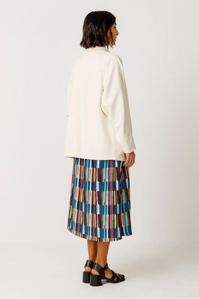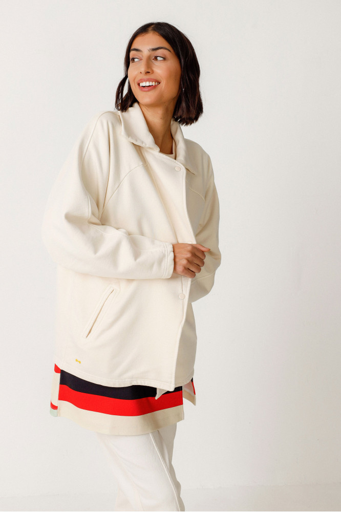 Sudadera holgada de manga larga con las sisas raglán y cierre de botones a presión. Fusiona comodidad y moda con un diseño fácil de llevar. Algodón orgánico con certificado GOTS.