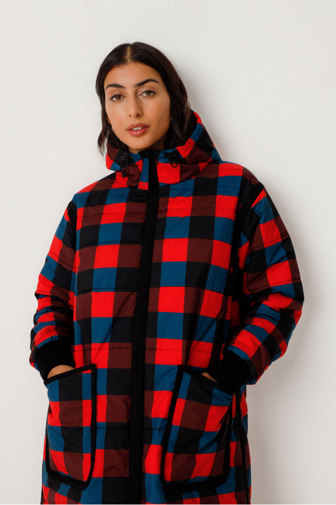 Beroki luze barrubigun eta barren-zabala. Txanodun lepoa, mahuka luzea, petatxu-poltsikoak eta ixteko kremailera aurrean. Txanoa lotzeko lokarri elastikoa. Estanpatu koloreanitza eta guztiz forratua. Ehun iragazgaitzez egina.