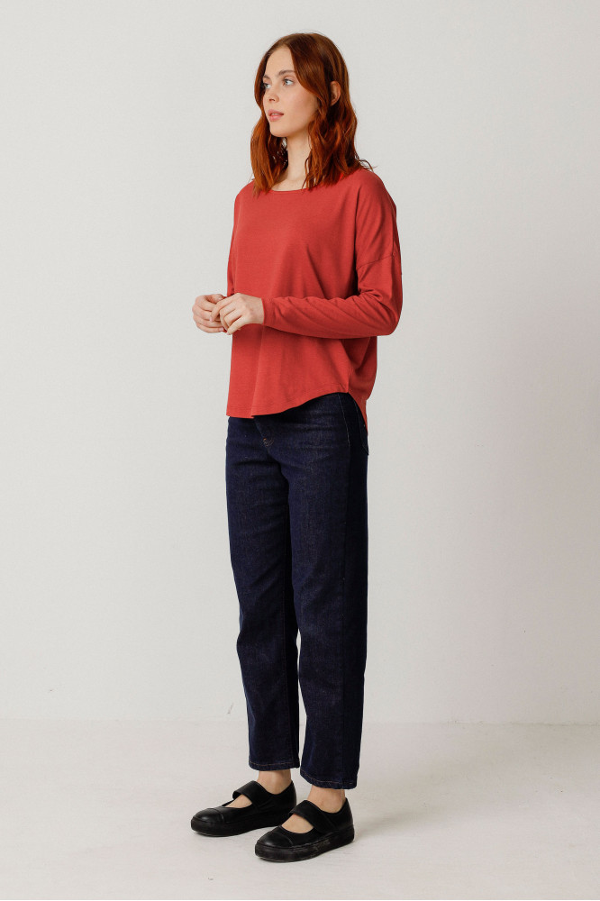 Kamiseta zabala. Mahuka luzea eta itsasontzi-formako lepoa. Egunero erabiltzeko jantzi eroso eta informala.