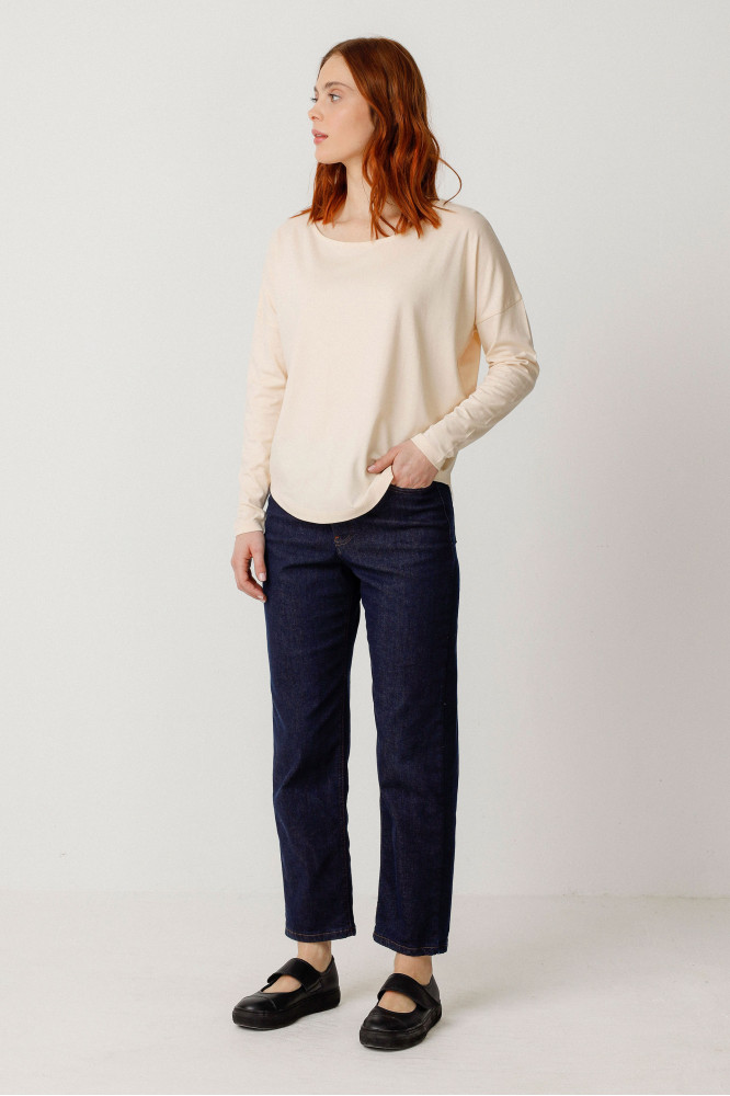 Ample T-shirt à col bateau et manches longues. Une pièce à la fois confortable et décontractée à porter tous les jours.