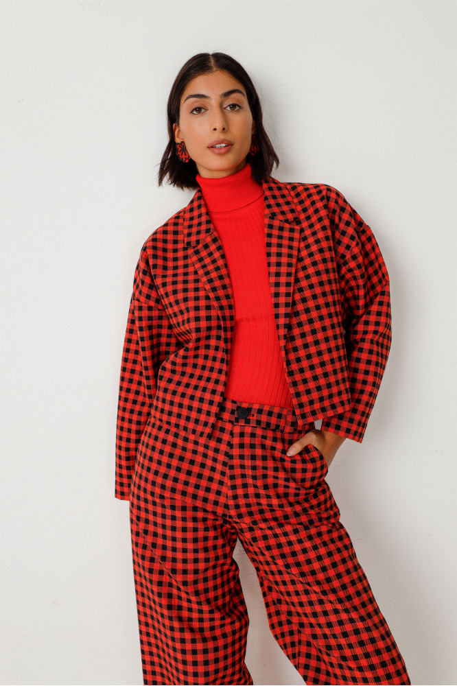 Pantalon droit en matière jacquard. Il affiche une taille classique, une longueur aux chevilles, des poches en biais et une fermeture avant zippée. Sa matière ajoute de la texture à vos tenues.
