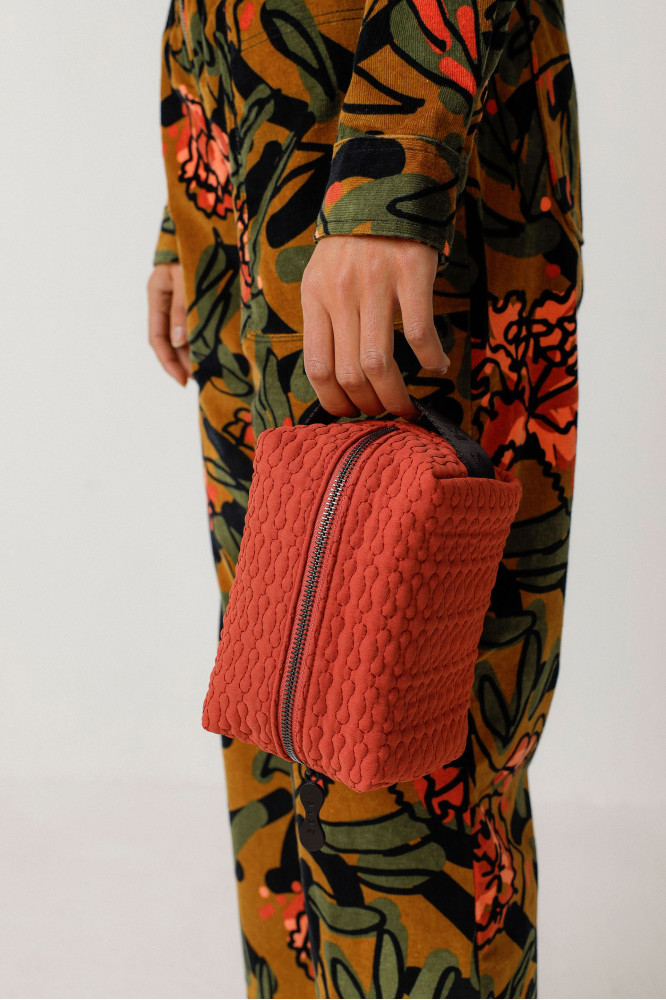 Nécessaire zippé avec une doublure imprimée et une poche intérieure. Organisez vos essentiels avec style.