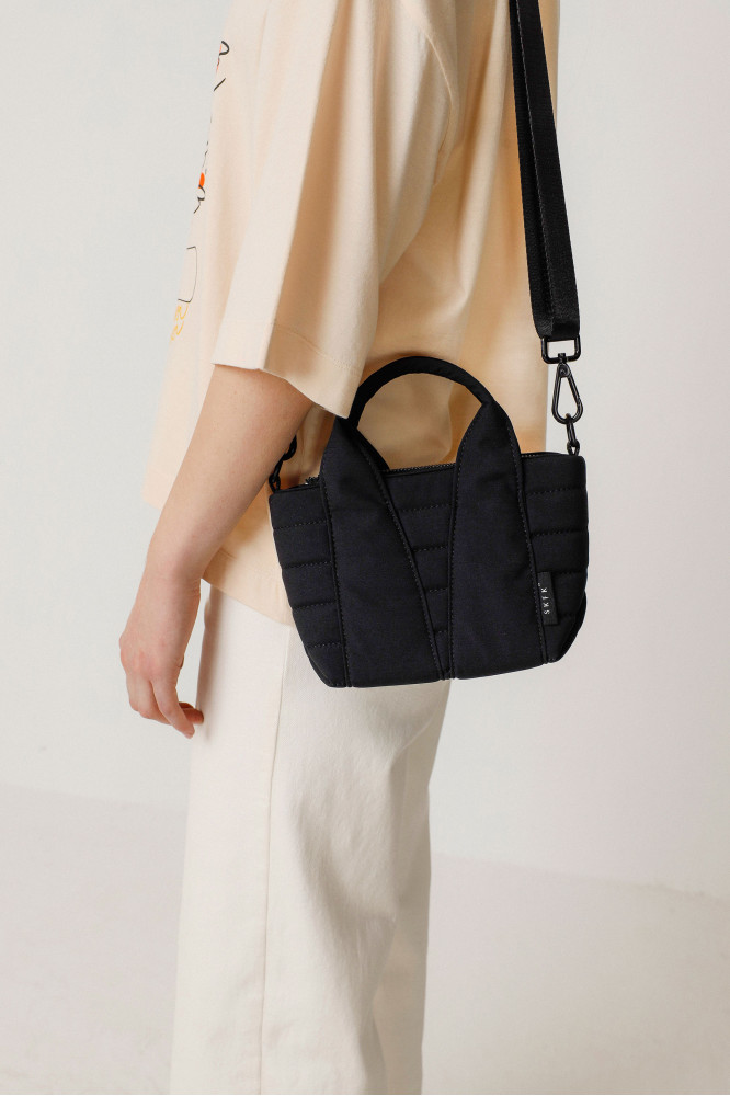 Sac en polyester recyclé avec une sangle ajustable et amovible, une poche intérieure zippée et une doublure imprimée. Dimensions 200 x 140 x 80 mm.